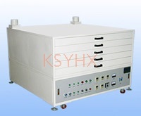 适用于高精度无尘的,网版烘干,独特的运风循环系统,使烤箱内部温度均匀,抽屉带轴承滑动推拉方便。1. 本机采用抽屉式结构,各烘架可独立操作,网版水平烘干,受热均匀;2. 本机有温度调节和恒温装置,客户可根据不同制版阶段,选择适合的温度;3. 本机装有抽气扇,可有效控制灰尘,使网版可在乳化剂未干时候不污染版面。